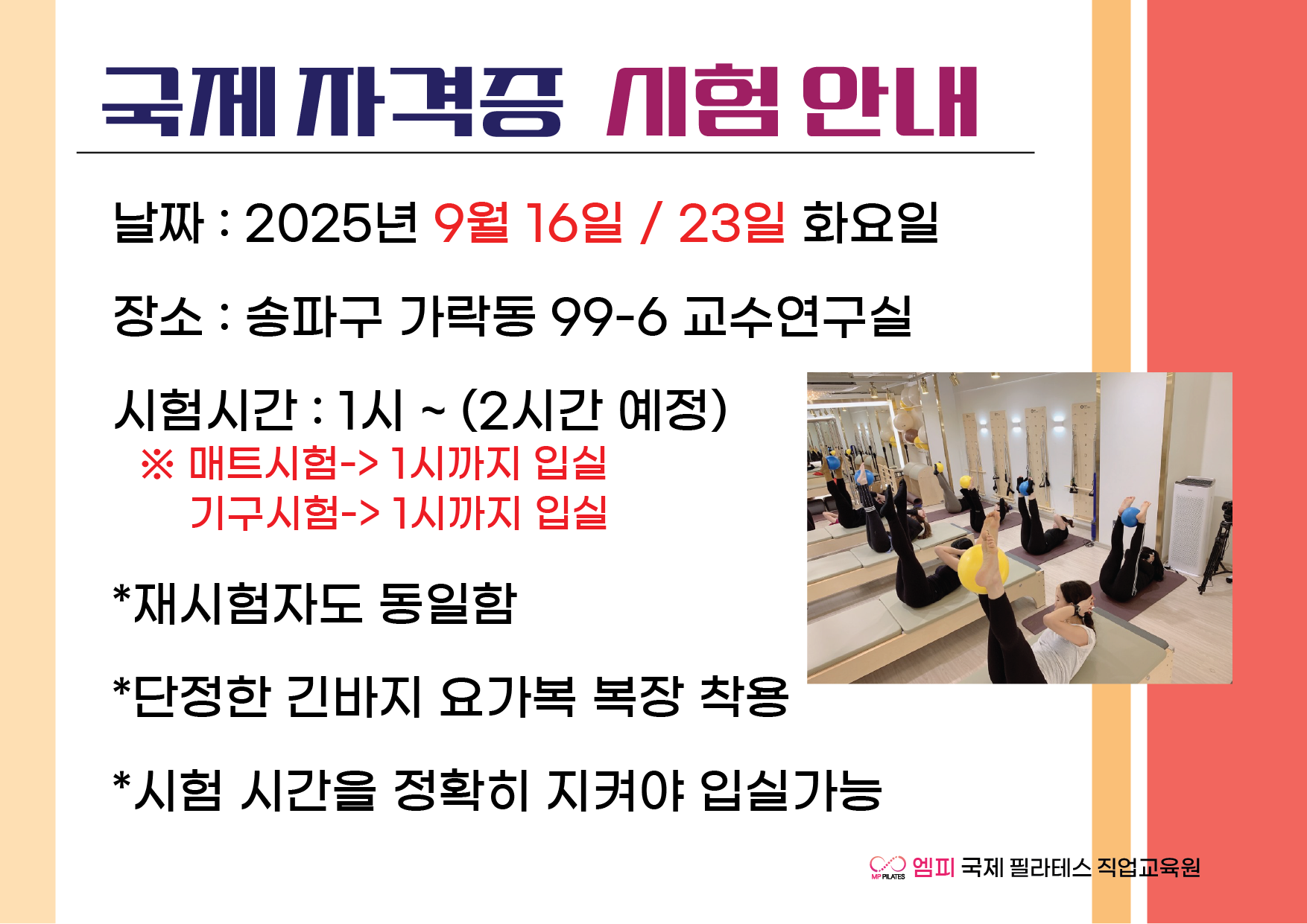 2025년 6월 지도자과정 매트/기구 통합 시험안내